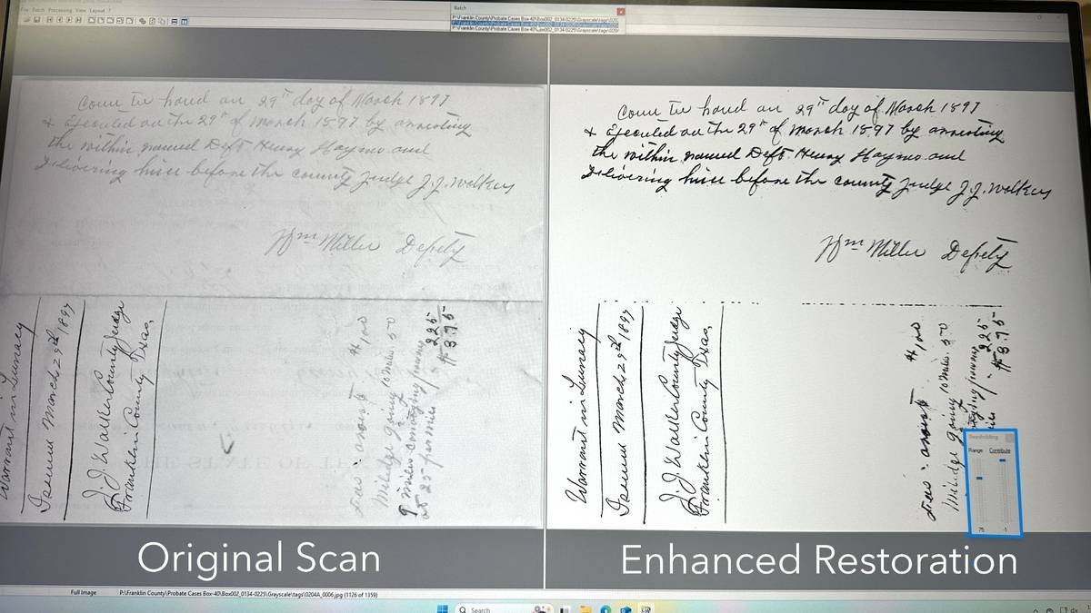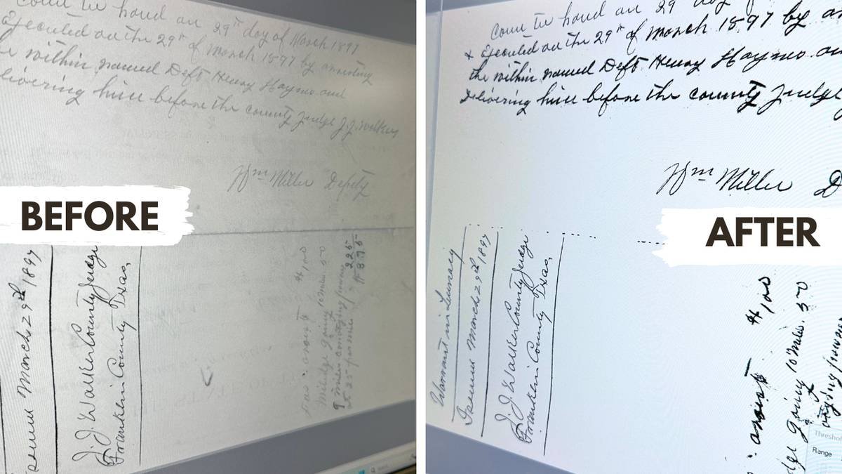 Court dockets, investigative reports, plats, and newspapers are deteriorating faster than many agencies can digitize them. Auto-scanning settings often exacerbate the situation, causing thin pages to bleed through, faint inks to disappear, signatures to blur, and handwritten notes to crop out. If those issues carry into the digital version, the files become hard to read, impossible to index, and risky for audits or eDiscovery.